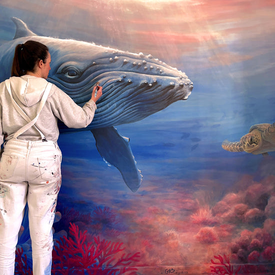 La réalisation de fresques monumentales permet à Maëna André d’inscrire son univers à l’échelle de l’espace public et d’en renforcer l’impact visuel. Le spectateur y est immergé dans des scènes où le monde animal s’invite au cœur des territoires humains.